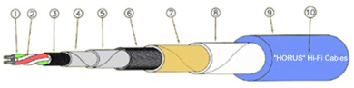 Comme l'ISIS II, l'HORUS est un câble mythique de HI-FI Cables que nous avons conservé au catalogue. C'est un câble que nous avions dévié de son utilisation dans l'aéronautique militaire et qui nous a énormément appris pour le développement des câbles de notre gamme. C'est le premier câble à haute immunité de blindage niveau trois dont ont été inspirés les NEITH, THOT et MAAT. C'est un câble à l'écoute douce et chaleureuse qui trouvera son utilisation dans des cas particuliers : écoute à très faible niveau, association d'électroniques imparfaites et dures, etc. L'HORUS peut aussi être utilisé comme câble AES/EBU, car c'était sa fonction d'origine.
